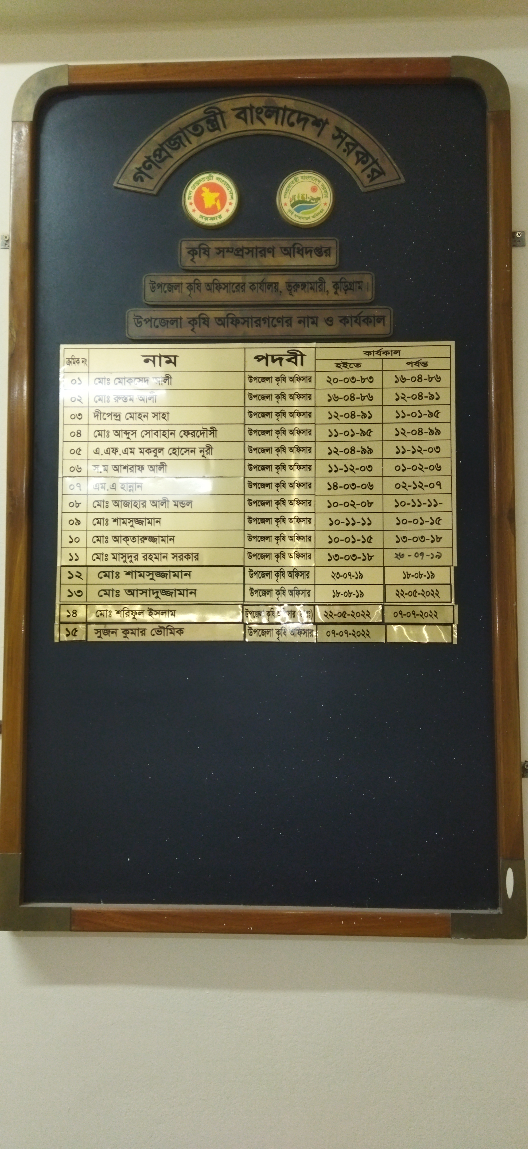 | 01 | মোঃ মোকসেদ আলী | উপজেলা কৃষি কর্মকর্তা | 20-03-1983 | 16-04-1986 |